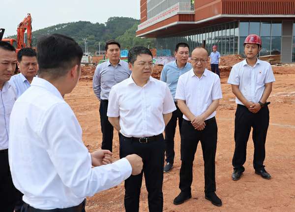 随后,在产业园项目经理刘文月的带领下,调研组一行在施工现场实地考察调研,深入了解现场施工进度和难度,协调解决困难。孙大光市长充分肯定了上海德华会展策划服务有限公司在产业园项目规划建设中的突出贡献,他强调,目前建设数字经济产业是广西的重大战略部署之一,各建设参与方要提高政治意识和大局观念,加强合作沟通,明确各自目标任务,保证工程质量,做好安全生产和疫情防控工作,推进中国—东盟数字经济产业园项目规划投资建设,确保今年9月份顺利开园。